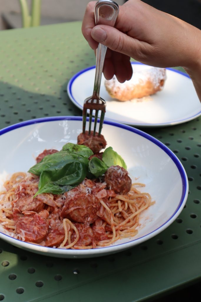 Our feature: Clemenza’s Spaghetti, inspired by the iconic pasta scene in The Godfather. Spaghetti with housemade meatballs and sausage in a red wine tomato sugo, finished with Grana Padano and extra virgin olive oil.