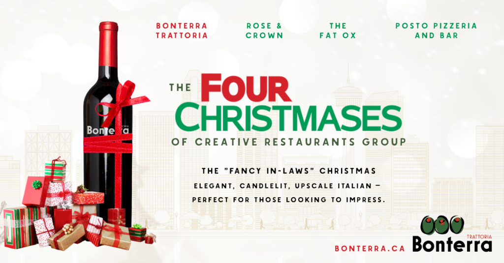 Looking to celebrate the holidays with elegance, warmth, and a little wow-factor? Bonterra is the place. Dubbed “The Fancy In-Laws’ Christmas”, this location is your answer to refined holiday entertaining — think candlelight, upscale Italian cuisine, and the kind of room that makes every guest feel special.